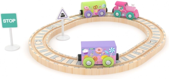 Acest set din lemn cu trenuleț pe șine este prima „linie ferată” ideală pentru cei mai mici. Datorită culorilor atrăgătoare și designului pentru fetițe, îi prinde ușor în joc și le dezvoltă imaginația. Materialele sunt prietenoase cu natura și fără substanțe chimice, astfel încât vă puteți baza pe un joc sigur în fiecare zi.