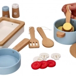 Cu acest set Micului Bucătar Lelin copilul tău poate imita în siguranță gătitul și activitățile culinare în propria bucătărie de jucărie. Permite copilului tău să experimenteze bucuria gătitului cu acest set complet:
