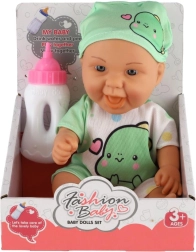 Bebeluș adorabil cu detalii realiste, ideal pentru micile mămici. Include corp solid și biberon pentru hrănire.
