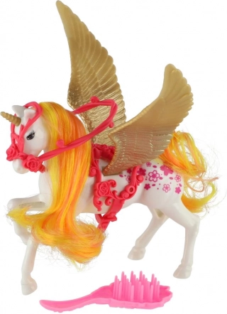 Unicorn cu aripi de pieptănat, cu pieptene, plastic, 22 cm, 3 culori