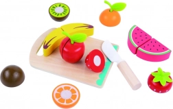 Setul din lemn pentru tăiat fructe și legume este modalitatea perfectă de a învăța copiii elementele de bază ale tăiatului și manipulării alimentelor într-un mediu sigur. Setul include: