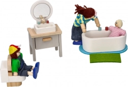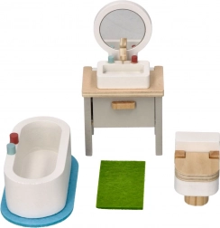Setul de baie pentru căsuța de păpuși oferă un aspect elegant și ajută la dezvoltarea imaginației copiilor în timpul jocului. Setul include: