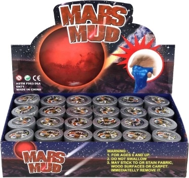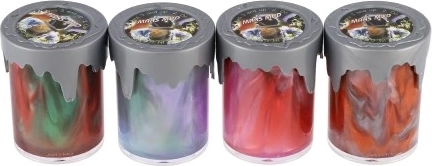 Slime-ul metalic Mars Mud îi va încânta atât pe copii, cât și pe adulți. Are o consistență plăcută, cu curgere lentă, care se modelează, se întinde și se strânge excelent. Borcănelul transparent evidențiază vârtejurile originale de culoare și luciul metalic.