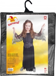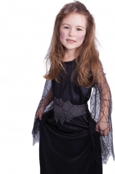 Un costum excelent pentru micile vrăjitoare! Costumul negru în marimea S este ideal pentru fetițele de 4 până la 6 ani. Arată irezistibil datorită rochiei cu mâneci transparente cu motiv de pânză de păianjen.