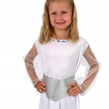 Oferiți copiilor voștri bucuria și frumusețea cu acest costum de înger, care va încânta cu siguranță la orice carnaval sau petrecere. Costumul este realizat dintr-un material confortabil, care va menține copilul în confort pe tot parcursul purtării. Datorită combinației de argintiu și alb și detaliilor fermecătoare, cum ar fi aureola și cureaua, fetița dvs. va arăta ca un adevărat înger.