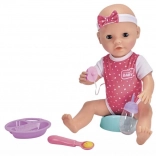 Păpușa Nou Născut Bebeluş Flămând cu înălțimea de 38 cm este cadoul ideal pentru micii mămici și tătici. Este echipată cu funcții care învață copilul să aibă grijă și să ofere îngrijire unui bebeluș.