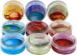 Slime-ul planetar oferă copiilor un joc distractiv și liniștitor – stoarcere, întindere și modelare a masei colorate în borcane tematice cu motive ale planetelor din Sistemul Solar. Datorită ambalajului practic, etanș, slime-ul rămâne proaspăt mai mult timp și pregătit pentru noi explorări ale universului.