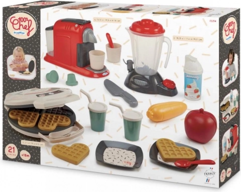 Descoperiți magia gătitului cu setul nostru cadou de aparate electrocasnice, care include un espressor, un aparat de făcut vafe, un blender și 21 de accesorii.