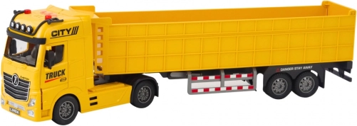 Vehiculul de transport galben oferă un model eficient și dinamic, de care se vor îndrăgosti toți pasionații de mașini mari. Cu funcții reale, cum ar fi remorca glisantă, permite scenarii de joc precum transportul de marfă sau lucrul pe șantier.