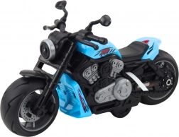Această motocicletă modernă albastră a fost proiectată cu drag pentru tinerii pasionați de motociclete care caută senzații tari și distracție dinamică. Fabricată din plastic rezistent, este echipată cu roți late și mânere ergonomice pentru stabilitate și confort în timpul jocului. Designul său este inspirat de motocicletele clasice cu motor și linii ale caroseriei realizate realist, adăugând autenticitate.