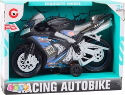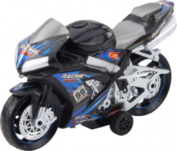 Această motocicletă negru-albastră este fabricată din plastic de înaltă calitate, fiind rezistentă la deteriorare și având roți late și stabile, ceea ce asigură joc sigur și confortabil pe diverse suprafețe. Efectele de iluminare și sunetele pot fi activate prin apăsarea unui buton - sunetele realiste ale motorului și sclipirile de lumină vor capta atenția copiilor și vor adăuga un aer realist jocului.