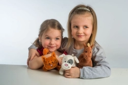 La apăsarea burticii, animăluțul redă un sunet autentic – copiii recunosc ușor cum miaună pisica, latră câinele sau nechează calul.