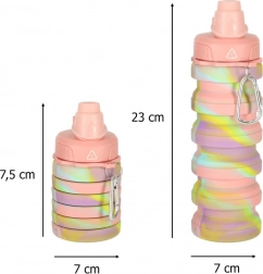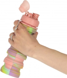 Această sticlă sport este un excelent companion pentru stilul dumneavoastră de viață activ. Dispune de un volum reglabil datorită structurii pliabile, care permite umplerea de la 250 ml până la 500 ml. Are un gât închis, asigurând o băutură confortabilă fără vărsare, iar designul său atractiv în combinații de roz, galben și violet vă va motiva să respectați regimul hidric.