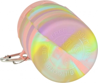 Sticlă sport pliabilă din silicon de 500 ml cu design curcubeu. Practică și sigură pentru un stil de viață activ.