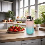 Sticla roz-albastră este un accesoriu practic pentru cei care doresc să-și urmărească aportul de apă pe parcursul zilei. Cu ajutorul scalei afișate cu infografică puteți controla mai bine câtă apă ați băut și cât mai trebuie să consumați. Volumul maxim este de 600 ml, ceea ce facilitează urmărirea aportului zilnic de lichide.<02p>
