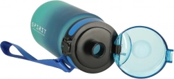 Sticlă sport cu muștiuc cu un volum de 600 ml în culoarea atrăgătoare verde-albastru este partenerul ideal pentru orice sportiv. Sticla este echipată cu un mâner confortabil și un sistem inteligent de deschidere.