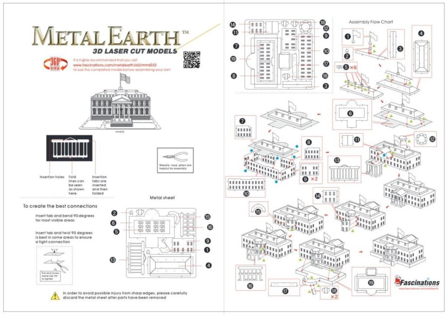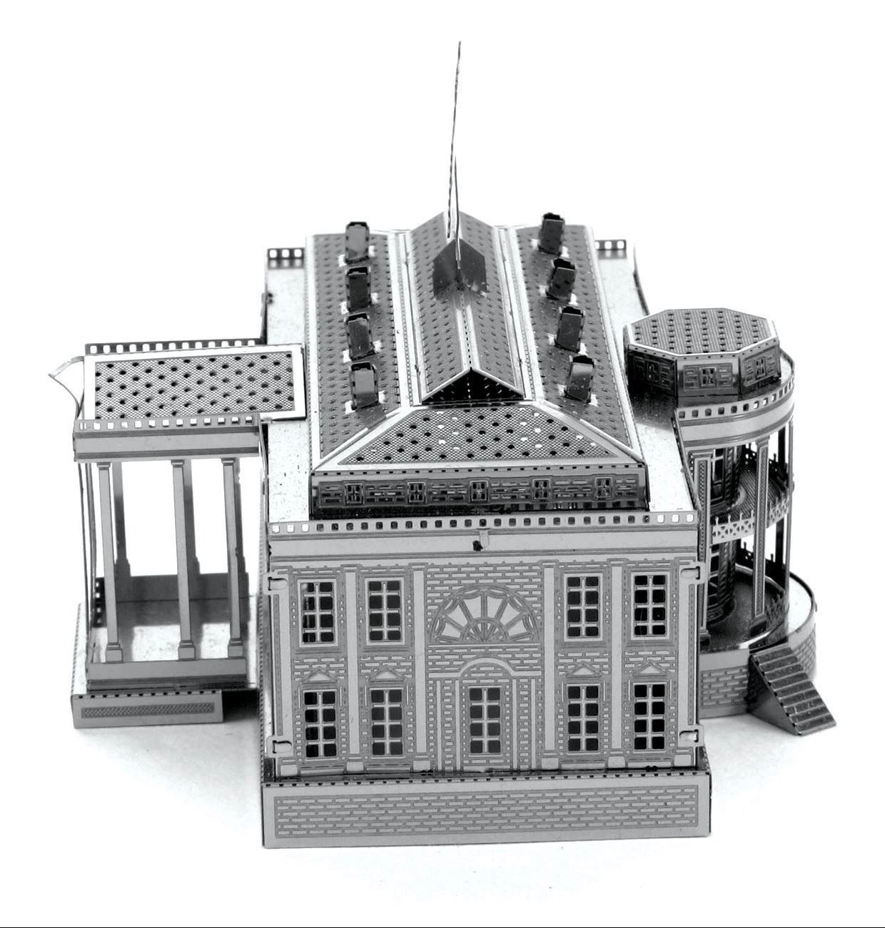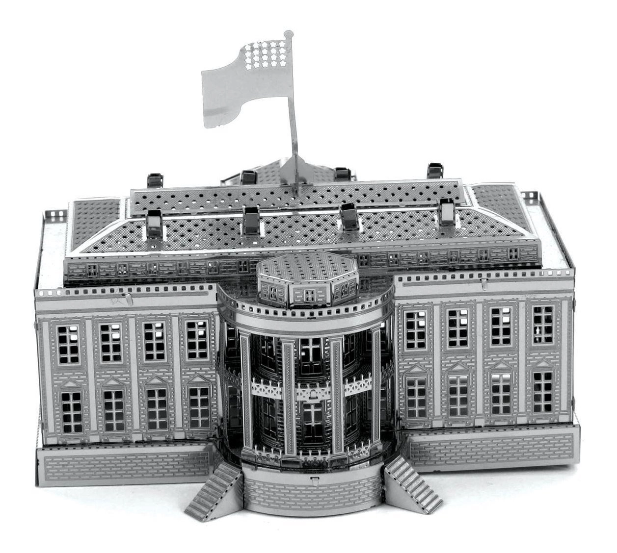 Puzzle-ul 3D Metal Earth nu doar că aduce distracție, ci și oportunitatea de a crea acasă o piesă unică de istorie. Această replică detaliată a Casei Albe va fi un adaos excelent pentru orice colecție.