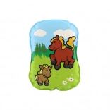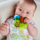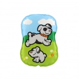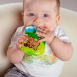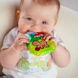 Drăguță perniță piuitoare pentru bebeluși, cu imagini cu animăluțe, susține primele descoperiri ale lumii. Este potrivită de la 0 luni, fără ftalați și corespunzător certificată pentru joacă sigură și liniștire.