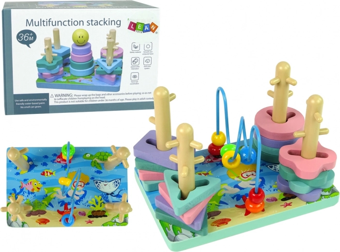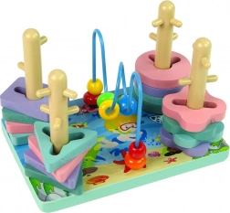 Baza include un labirint cu 7 bile de culori și forme diferite pe care copiii le pot deplasa de-a lungul traseului. Această jucărie dezvoltă abilități precum imaginația spațială, precizia și abilitățile manuale.