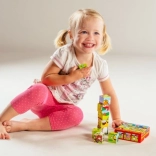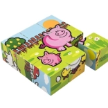 Aceste cuburi din lemn oferă copiilor distracție la asamblarea diferitelor imagini din mediul domestic. Fiecare set include șase modele diferite de animale pe care copiii le pot descoperi.