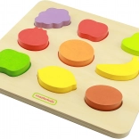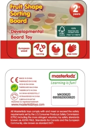 Sortatorul de forme Fructe Colorate de la marca Masterkidz este o jucărie din lemn minunată pentru copii, cu multe scopuri. Nu doar că asigură distracție, dar și îi învață pe copii denumirile fructelor și promovează consumul lor. Copilul trebuie să potrivească fructele cu decupajele corespondente de pe plăcuța de lemn, ceea ce necesită concentrare și analiză a formelor. Această activitate contribuie și la dezvoltarea abilităților de coordonare.