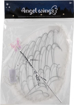 Transformă-te într-o ființă strălucitoare cu acest set delicat pentru micile zâne și îngerași. Conține aripi îngerești cu tiv moale și baghetă magică asortată cu fundițe. Ideal pentru carnaval, ședințe foto și jocuri de poveste acasă. Structură ușoară și elastice pentru purtare confortabilă. Potrivit pentru copii de la 3 ani.