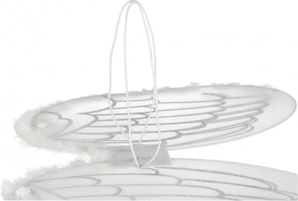 Acest set elegant pentru carnaval dă aripi imaginației fiecărui copil. Aripile îngerești albe, cu tiv fin din puf și motive argintii, arată fermecător în fotografii și la reprezentații. Materialul ușor și bretelele elastice asigură confort chiar și la purtare prelungită.