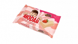 Napolitană gustoasă umplută cu cremă de căpșuni, ideală pentru toți iubitorii de dulciuri care caută o gustare fină și delicioasă.