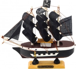 Fabricat din lemn și lucrat manual cu mare atenție, acest model adaugă o atmosferă maritimă interiorului. Datorită dimensiunilor sale limitate, se potrivește ușor în orice cameră - pe un raft, vitrină sau birou. Este o decorare grozavă pentru iubitorii legendelor piraterești și stilului vintage.