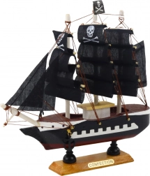 Acest model miniaturizat al unei corăbii pirat este realizat din lemn și finisat manual cu atenție la simetrie, proporții și detalii realiste, precum frânghii, ornamente la pupă sau craniul de pe catarg. Este așezat pe o bază stabilă cu o plăcuță descriptivă, ceea ce îl face o decorație ideală pentru bibliotecă, birou sau colecție personală. În plus, datorită dimensiunii sale compacte, îl puteți plasa chiar și în spații restrânse, unde aduce un aer de aventură maritimă și atrage privirile prin contrastele de culori.