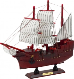 Acest model proaspăt de trei catarge oferă eleganța unei nave maritime clasice din era marilor descoperiri. Este realizat cu grijă din lemn și finisat manual, asigurând o calitate înaltă și o execuție detaliată. Întregul model este așezat pe un suport de lemn cu plăcuță și este gata pentru o prezentare impresionantă.