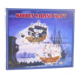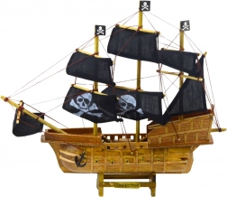 Modelul navei cu trei catarge în stil pirați va atrage pe orice iubitor de aventuri marine. Proiectat după legendarele nave corsare din secolele 17 și 18, acest model oferă un trup din lemn natural cu imitații laterale de tunuri și o linie proeminentă a pupa și prova. Velele din pânză neagră cu imprimeuri de craniu și oase încrucișate și steaguri pirați oferă navei un aspect irezistibil, caracteristic, amintind de aventurierii maritimi și de libertatea legendară pe mare deschisă.