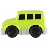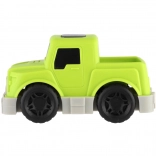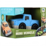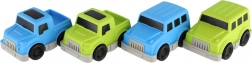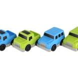 Modelele sunt disponibile în 4 variante (autoturism, SUV, pickup și camion) în nuanțe plăcute de albastru și verde lime. Dimensiunea compactă de 9 cm încape în rucsăcel sau în buzunarul căruciorului, fiind ideală pentru acasă, în vizită sau în călătorii.