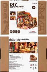 Bucurați-vă de atmosfera unui bar și bistro stilat cu Miniatura RoboTime a căsuței Cheers. Acest model unic oferă decorațiuni retro, iluminare intimă și posibilitatea de asamblare creativă, făcându-l un cadou ideal sau o decorațiune de interior.