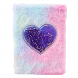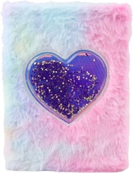 Bucurați-vă de culorile minunate și de materialul pufos cu care este acoperită coperta caietului. Caracteristica principală este buzunarul transparent în formă de inimă plin cu sclipici, care se mișcă liber, oferind o decorațiune interactivă unică.
