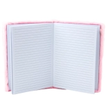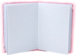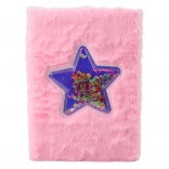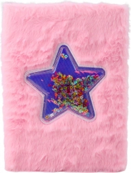 Coperta este realizată dintr-un material moale și plăcut la atingere, de culoare roz intens. În centrul acesteia se află o aplicație transparentă în formă de stea, în interiorul căreia se află confetti colorate care se mișcă liber la fiecare mișcare a caietului. Acest detaliu diferențiază produsul de caietele clasice.