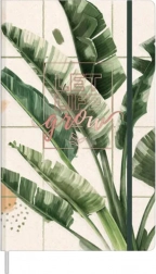 Bucură-te de eleganța caietului cu copertă tare mată, decorată cu un motiv realist de foi verzi mari pe un fundal deschis. Inscripția „Let life grow” amplasată central adaugă o notă pozitivă și o energie delicată.