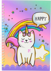 Acest caiet colorat cu temă de pisică-unicorn și curcubeu este un însoțitor ideal pentru notițe zilnice, observații și secretele copiilor. Culorile intense pastelate și ilustrația amuzantă vă îndeamnă la creativitate și cu siguranță vor aduce un zâmbet pe față.