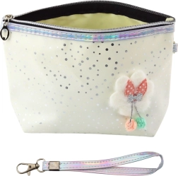 O geantă de cosmetice elegantă și practică de culoare albă, cu un aspect strălucitor, este ideală atât pentru școală, cât și pentru utilizare zilnică. Designul său universal permite utilizarea fie ca penar pentru rechizite școlare, fie ca geantă de cosmetice pentru accesorii mici.