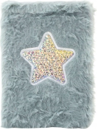 Coperta moale acoperită cu pluș plăcut la atingere în nuanță subtilă de gri conferă carnetului un caracter distinctiv. Pe mijlocul coperții se află o stea sclipitoare care își schimbă culoarea și contrastează cu materialul moale.