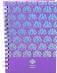 Coperta mov cu scoici oferă caietului un aspect modern.