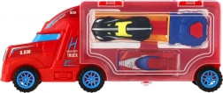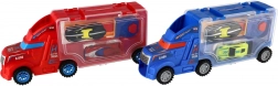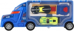 Camionul transportor din plastic aduce copiilor multă acțiune și ordine – în cutia transparentă pot transporta două mini mașinuțe și accesorii, iar datorită rampei rabatabile le pot încărca și descărca ușor. Rularea liberă asigură o deplasare cursivă fără baterii și o manevrare confortabilă.