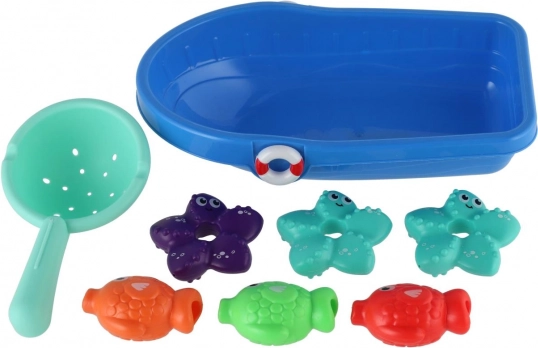 Setul conține mai multe forme drăguțe de peștișori și stele de mare în culori vii. Copiii le pot prinde cu sita sau le pot lăsa să plutească liber.