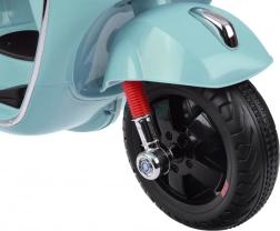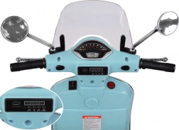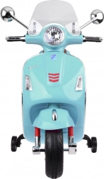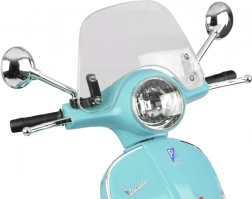 Cei mici vor îndrăgi aspectul elegant al VESPA, cu plăcuță frontală, oglinzi retrovizoare și detalii funcționale. Roțile stabilizatoare ajută la menținerea echilibrului, astfel trotineta este potrivită și pentru începători. Propulsia este asigurată de două motoare puternice de 12 V / 30 W alimentate de o pereche de baterii de 6 V pentru o plimbare mai lungă.