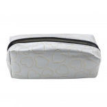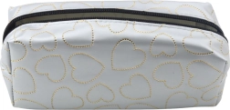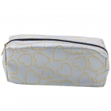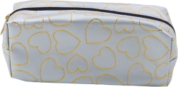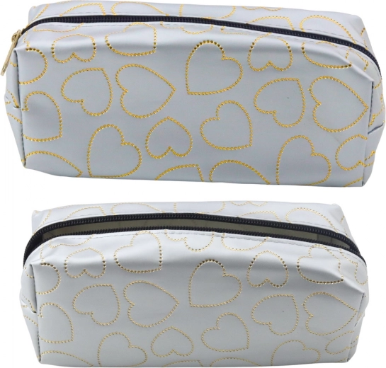 Un penar stilat și funcțional în culoare elegantă de argintiu cu model de inimi aurii, ideal pentru studenți și pentru oricine apreciază accesorii practice și la modă.
