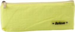 Datorită culorii vibrante, penarul este ușor de recunoscut și poate fi găsit rapid în geantă sau rucsac. Eticheta frontală cu inscripția 'Believe' adaugă un accent de design. Penarul se închide cu un fermoar stabil care protejează conținutul și permite acces rapid.