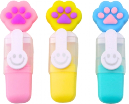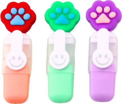 Acest set de mini markere cu o lăbuță drăguță oferă combinația perfectă de funcționalitate și stil pentru tinerii utilizatori și iubitorii de articole de papetărie colorate. Markerele au lungimea de 8 cm și au un clips decorativ în formă de lăbuță colorată, devenind astfel nu doar un instrument practic, ci și un accesoriu jucăuș pentru penar.