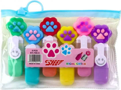 Mini markere cu lăbuță în etui, 6 buc. Stilate, compacte, ideale pentru utilizare în școală și birou.