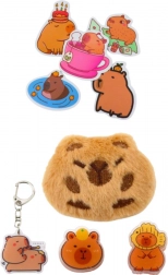 Penarul este fabricat din material durabil, asigurând o viață lungă. Culoarea sa bej elegantă este potrivită pentru diverse stiluri. De asemenea, include o capibară plus care poate fi atașată la penar, rucsac sau haine. Setul de accesorii include de asemenea un breloc cu temă de capibara, două cleme și cinci autocolante cu capibara.