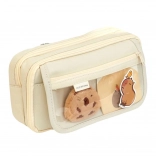 Penarul bej cu motive capibara este nu doar un organizator practic, ci si un set magic de accesorii creative care va impresiona orice iubitor al papet03riei. Are dou03 compartimente spa1bioase, una dintre ele fiind echipat03 cu separatoare de gril03 pentru o organizare convenabil03 a instrumentelor de scris. Pe partea frontal03 sunt dou03 buzunare exterioare, din care unul transparent, ideal pentru decoratiuni, pin-uri sau carti postale.